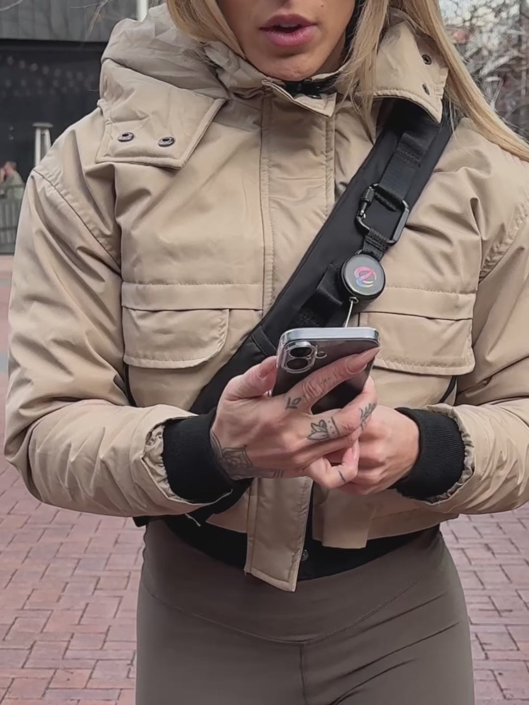 Integrated strap pocket fits phones up to Pro Max and Ultra size phone (without larger phone cases). Utility loops support modular add-ons.