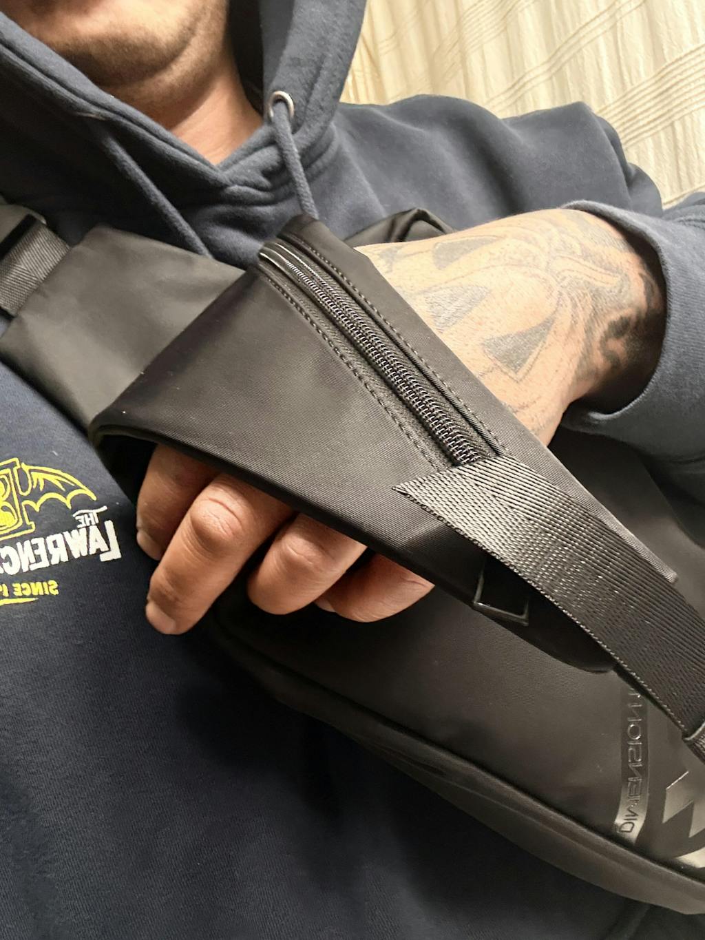 Single sling design rotates across your body for one-handed access without removing the bag.